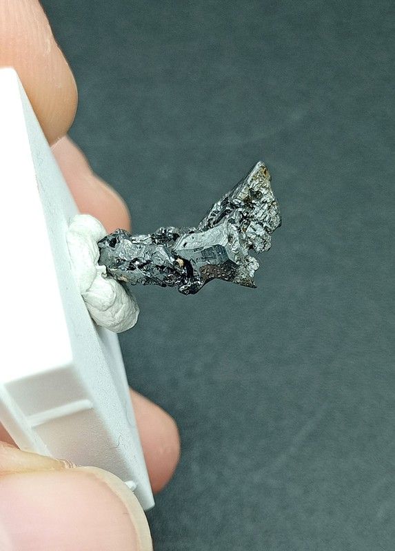 Ejemplar de 15x9 milímetros. Procedencia: Mina San Carlos, Guanajuato (México). Este espécimen presenta caras de cristal de silueta espinosa, con típicas superficies de corrosión de , dado que esta especie es sumamente maleable.