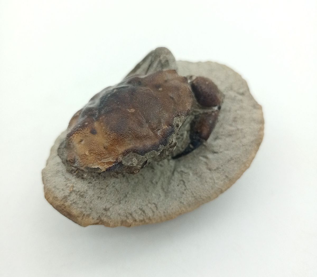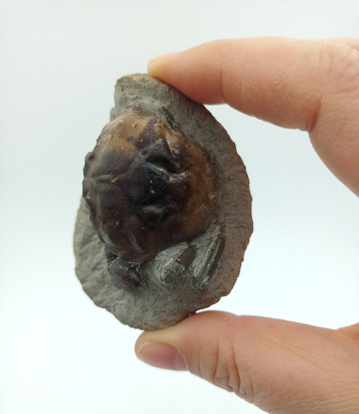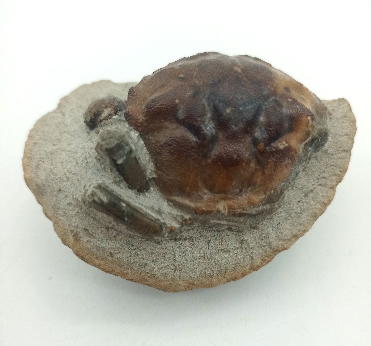 Espécimen de muy buena preservación. Presenta el caparazón con su cáscara prácticamente intacta. Con la ligera excavación efectuada se aprecian también una pinza y parte de algunas patas.