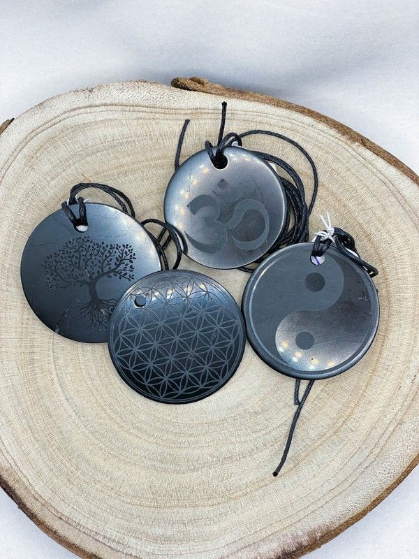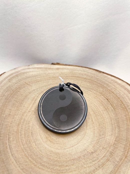 Colgante circular de 4mm de diámetro x 2mm de grosor con grabado del yin-yang. Cordón incluido