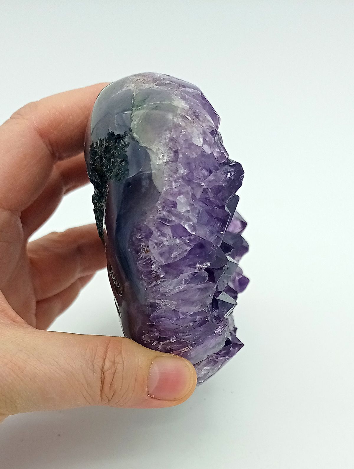La Amatista es una variedad macrocristalina violeta del cuarzo. El color puede ser más o menos intenso, según la cantidad de hierro que contenga. Puede presentarse coloreada por zonas con cuarzo transparente o amarillo. Las puntas suelen ser más oscuras o degradarse hasta el cuarzo incoloro.