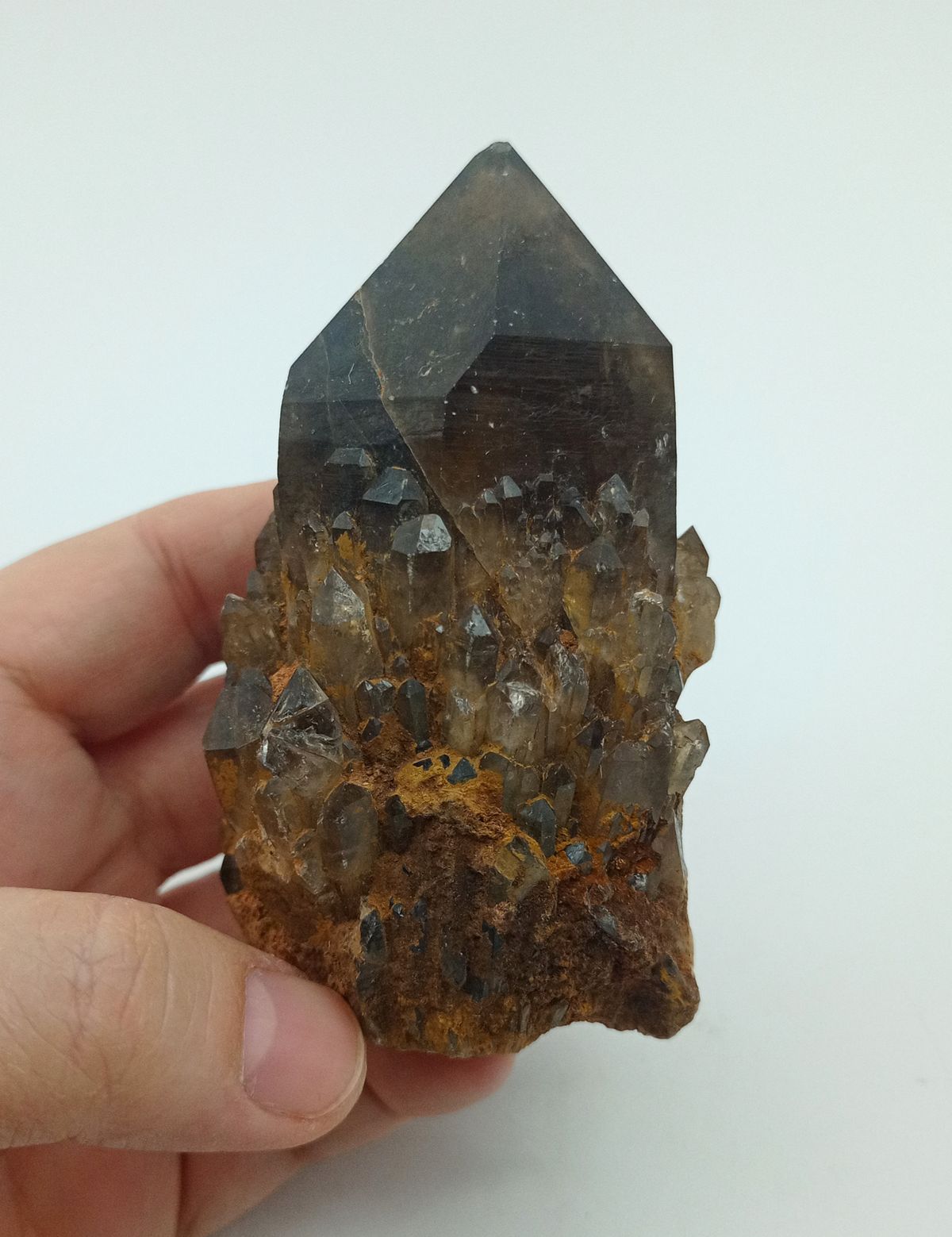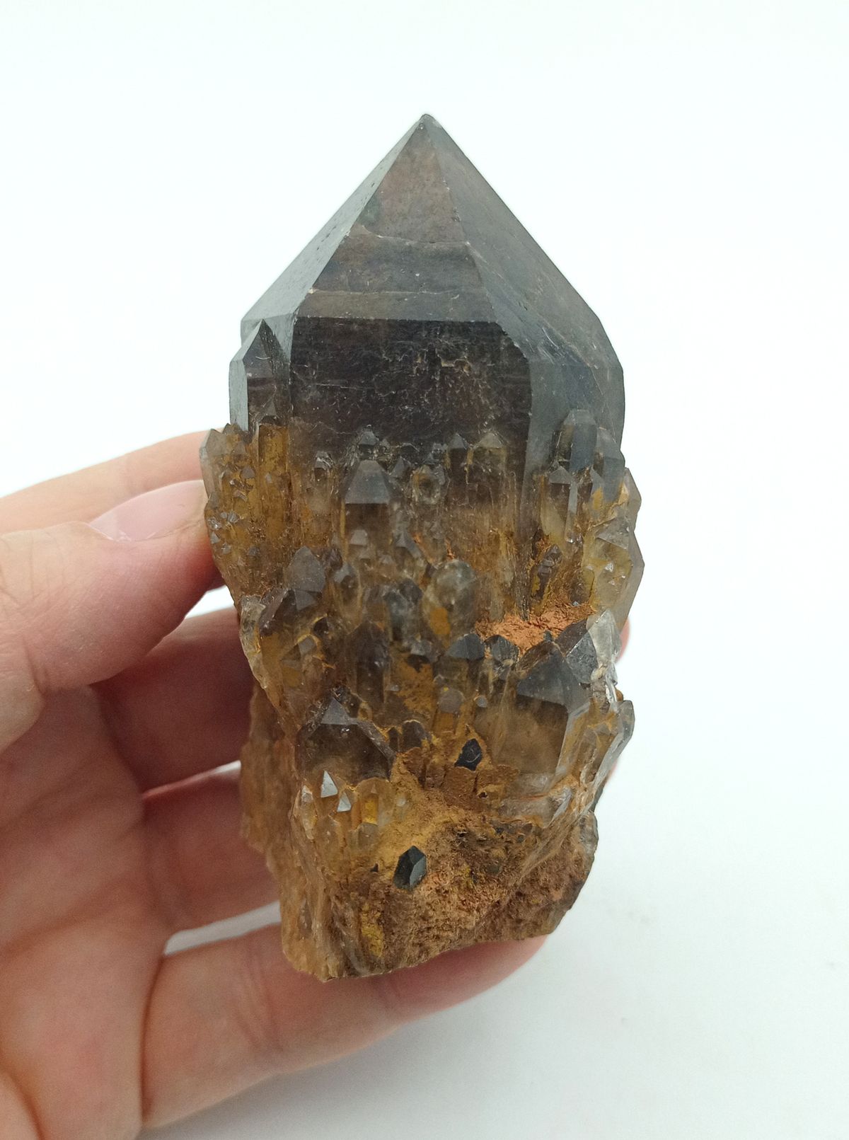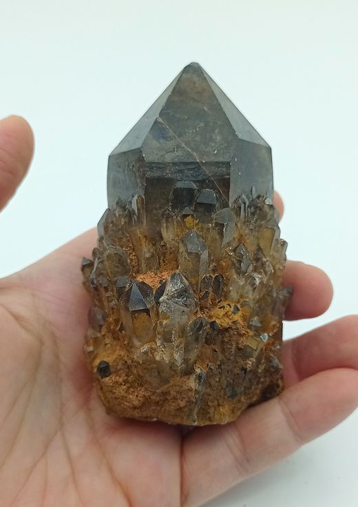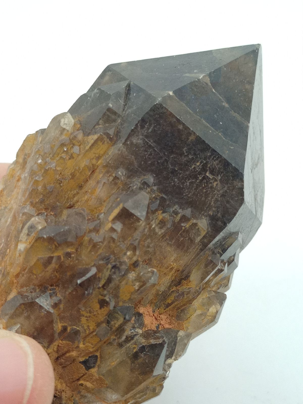 Ejemplar de Cuarzo Citrino en forma de catedral cuyas medidas son: 88x54x53 milímetros. Procedencia: Lwena, Alto Katanga, R.D Congo.