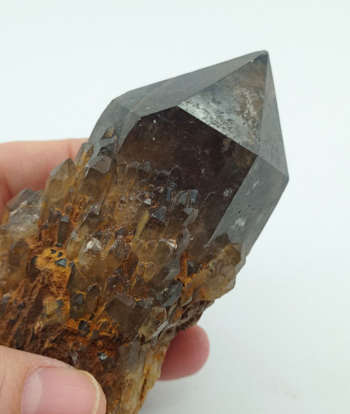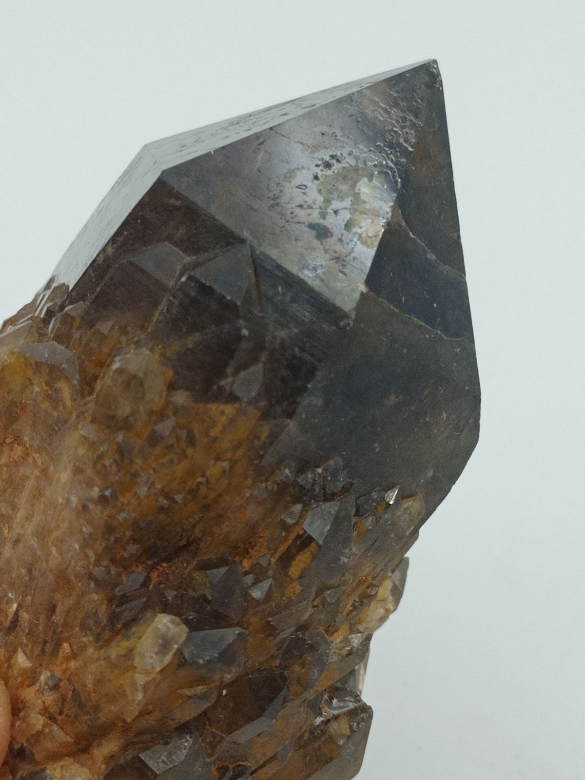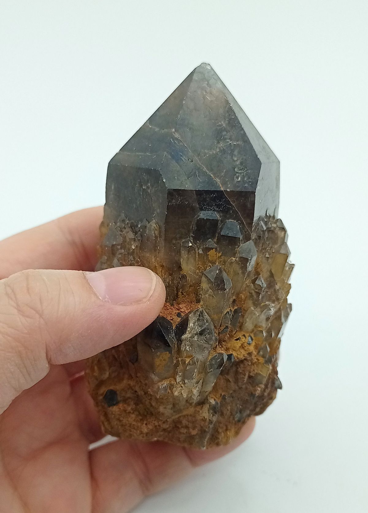 Ejemplar de Cuarzo Citrino en forma de catedral cuyas medidas son: 88x54x53 milímetros. Procedencia: Lwena, Alto Katanga, R.D Congo.