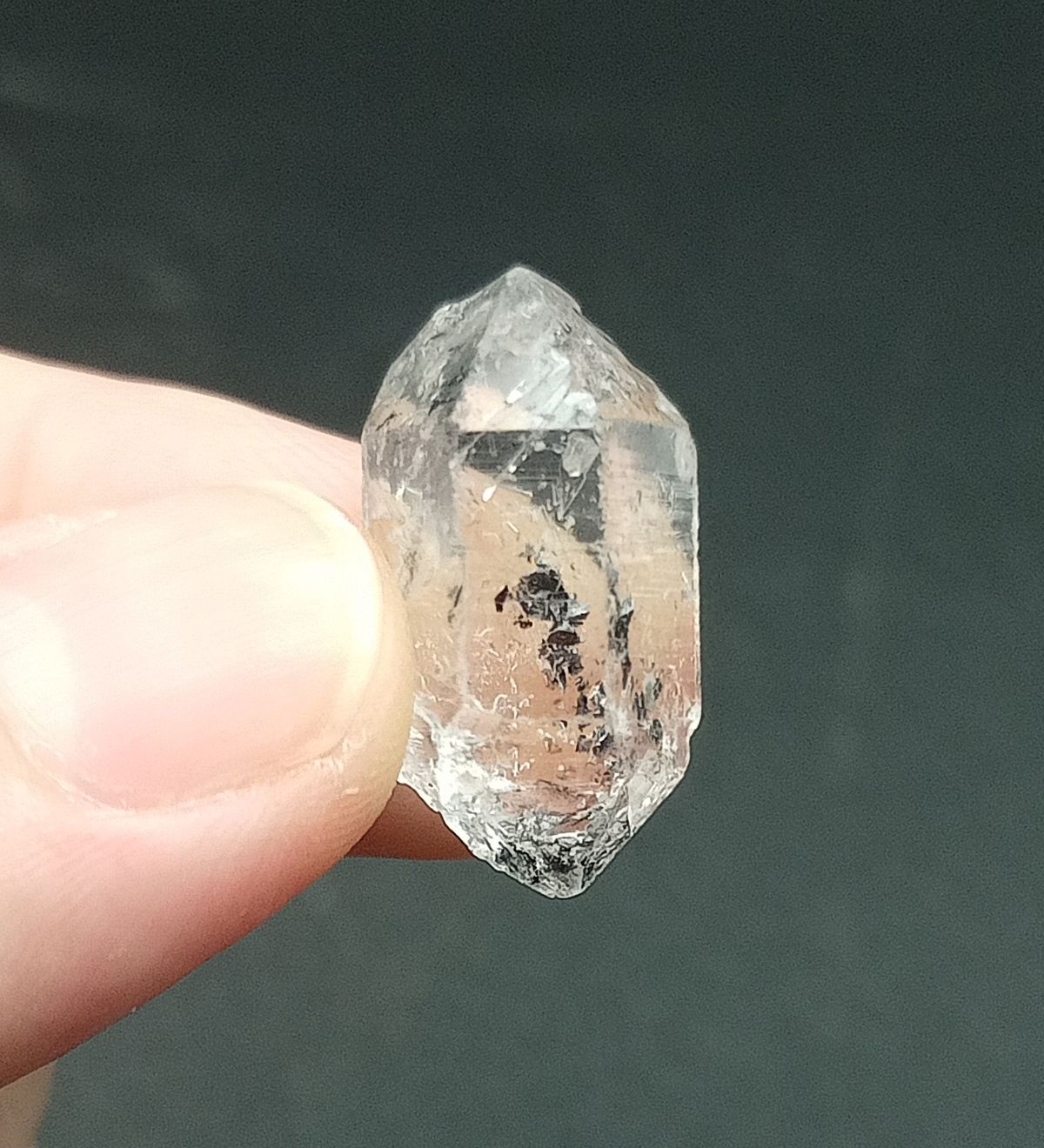 Cristal biterminado de cuarzo Herkimer. Tamaño del cristal 22x12x11 mm. Procedencia: Herkimer, New York (USA)