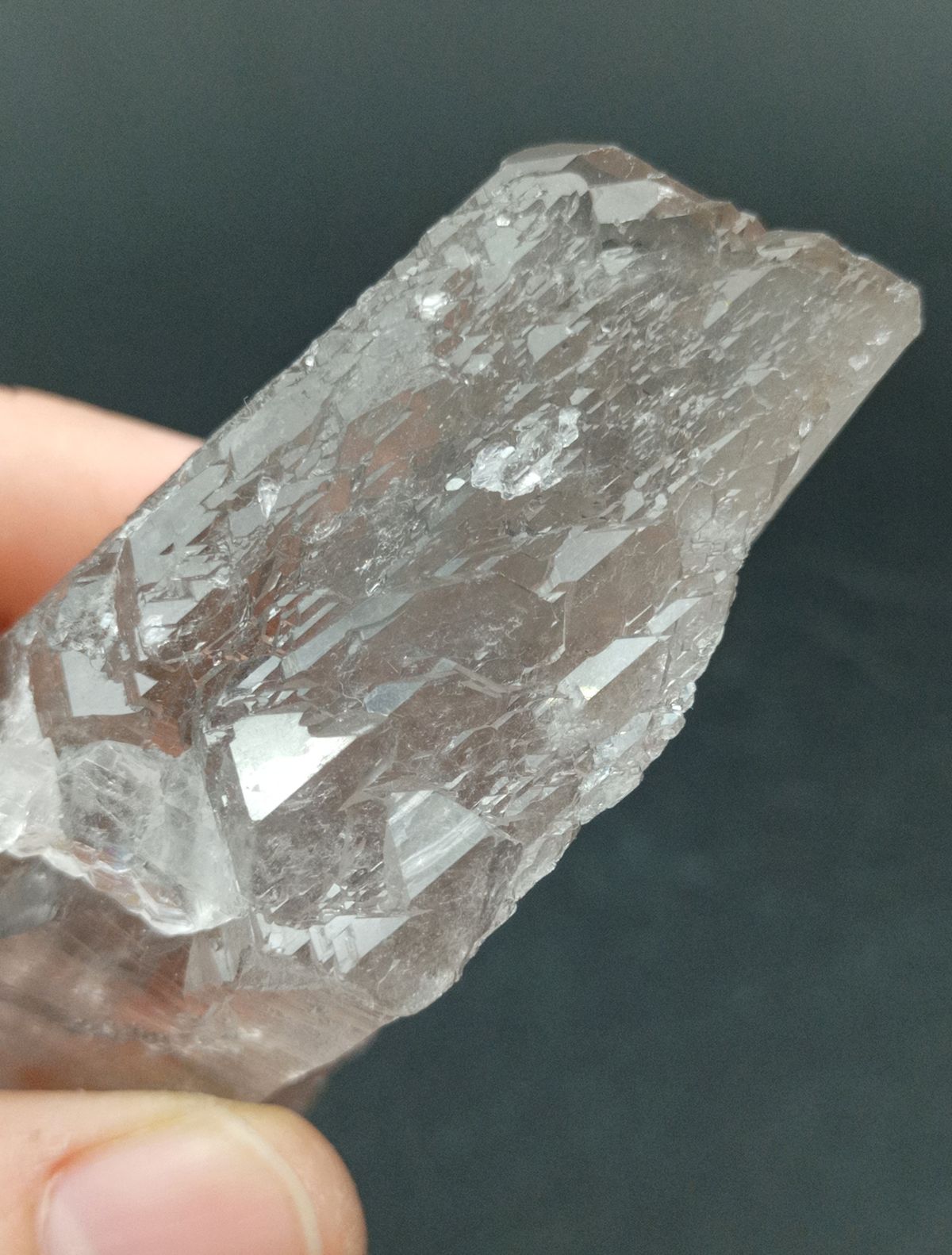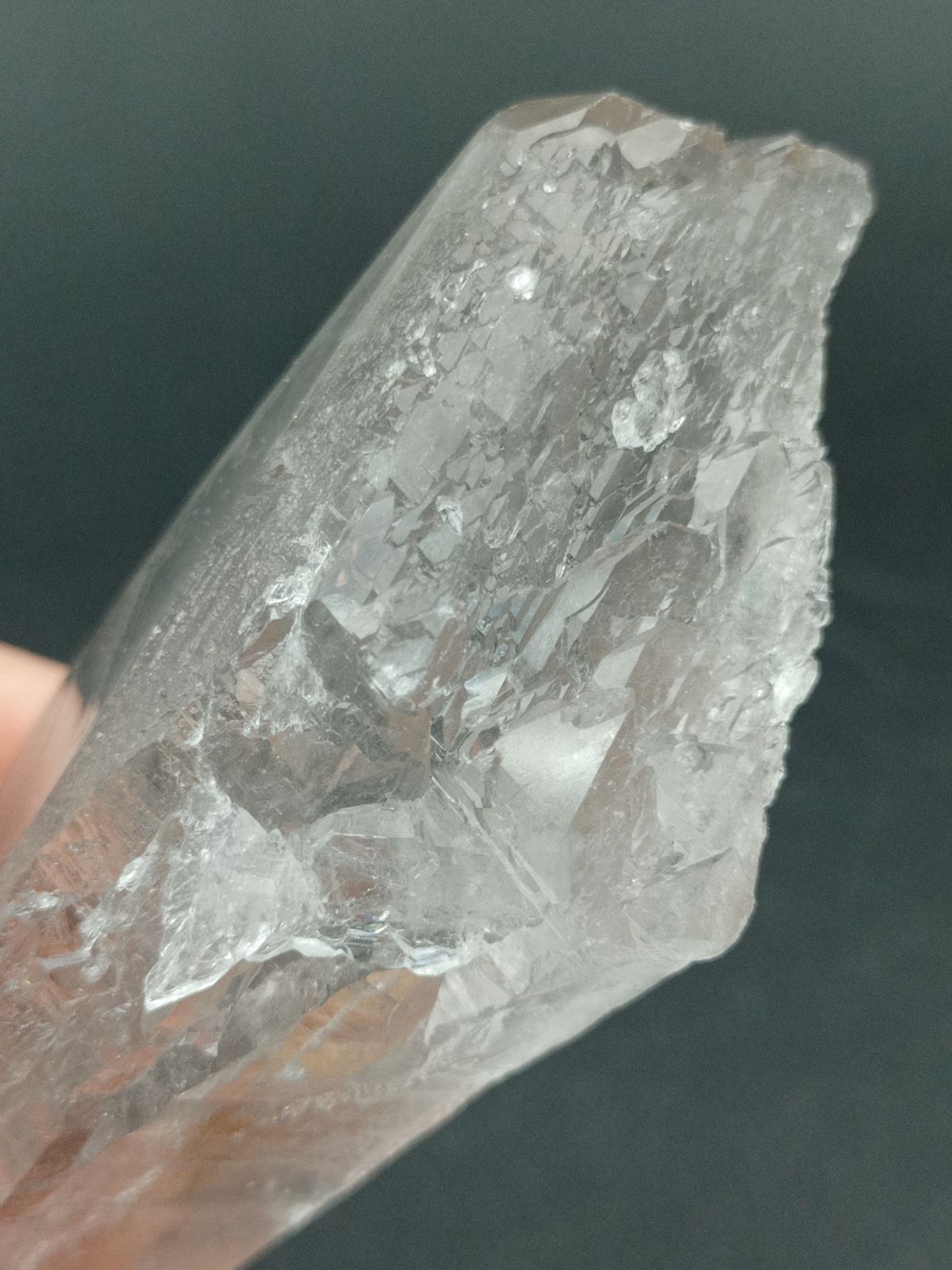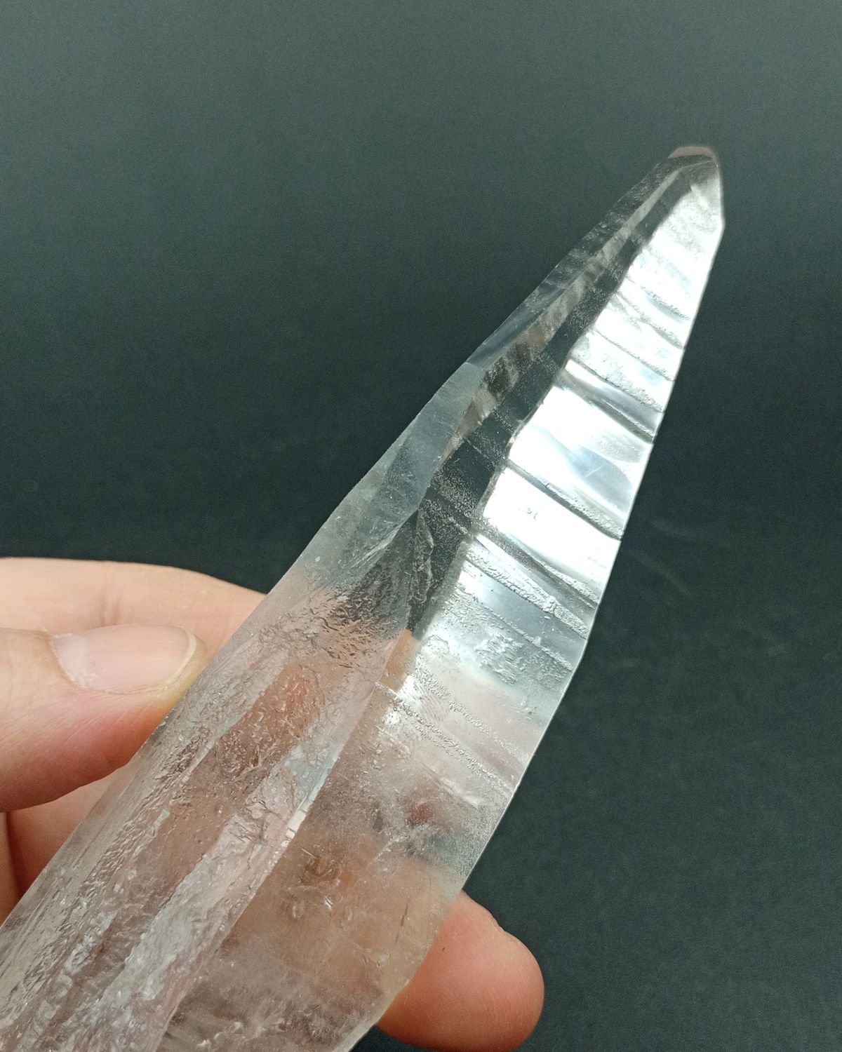 Punta de Cuarzo Lemuriano terminada en ambos extremos. Tamaño de las pieza 144 mm de largo x 35 mm en el extremo más grande Procedencia: Diamantina, Minas Gerais, Brasil.