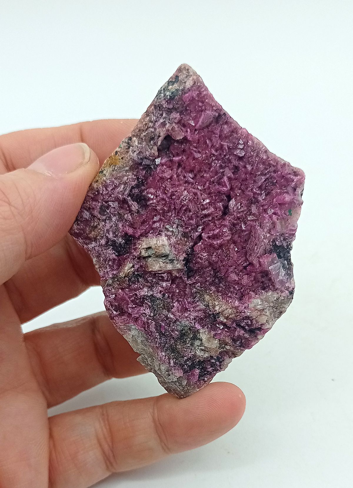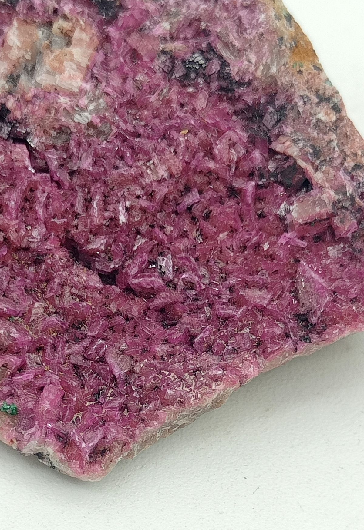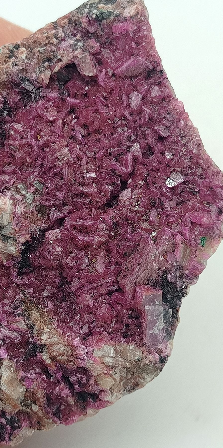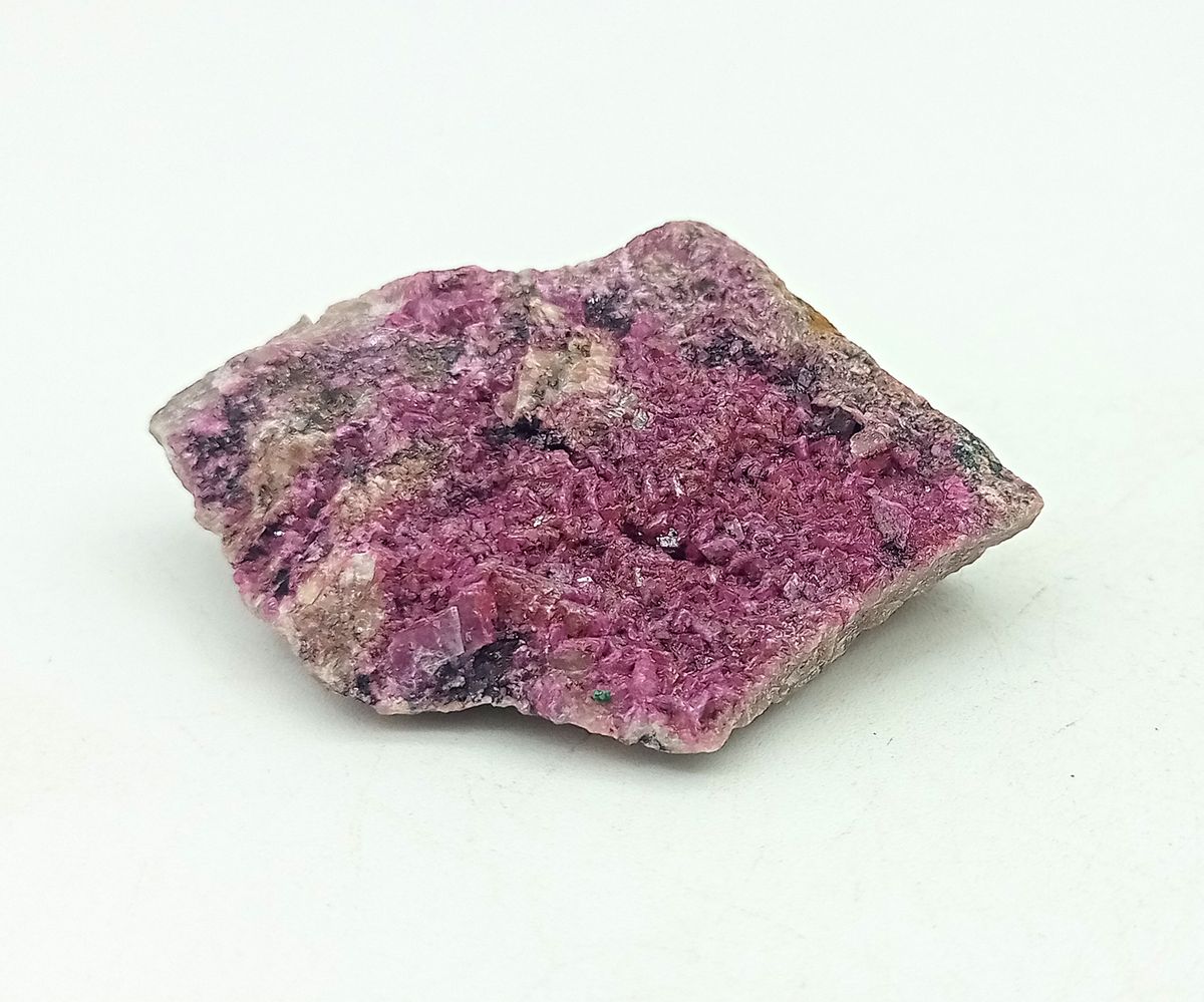 Ejemplar de Dolomita cobaltífera cuyas medidas son: 71x51x21 mm. Procedencia: Kolwezi, Katanga (R.D. Congo). Presenta pequeñas caras de romboedros, y un brillo intenso.