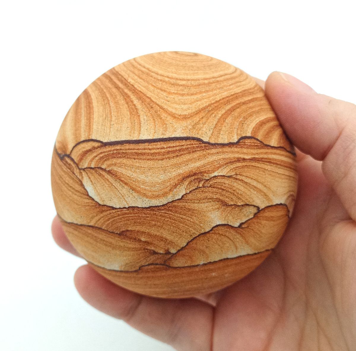 Esta esfera tallada en Arenisca "picture" tiene un diámetro de 74 milímetros y pesa aproximadamente 500 gr. Procedencia: Arizona (USA)
