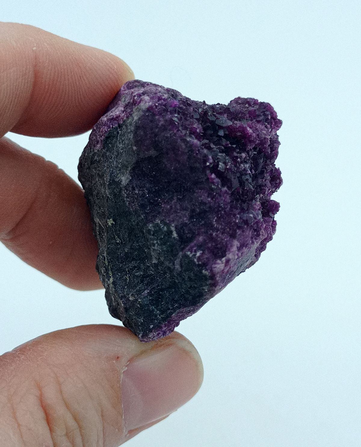 Pieza de Kammererita sobre Cromita cuyas medidas son: 32x34x26 milímetros. Procedencia: Kop Crom Mine, Kop Dalgari, prov. de Erzurum(Turquía)