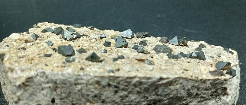 Ejemplar de Magnetita cuyas medidas son: 115x72 milímetros. Midiendo de ancho 45 mm.. Con Cristales de hasta 9x9 mm.. Procedencia: Cerro Huañaquino (Bolivia)