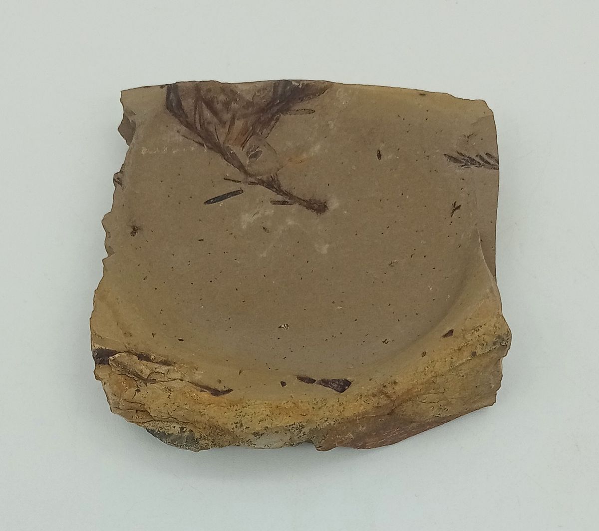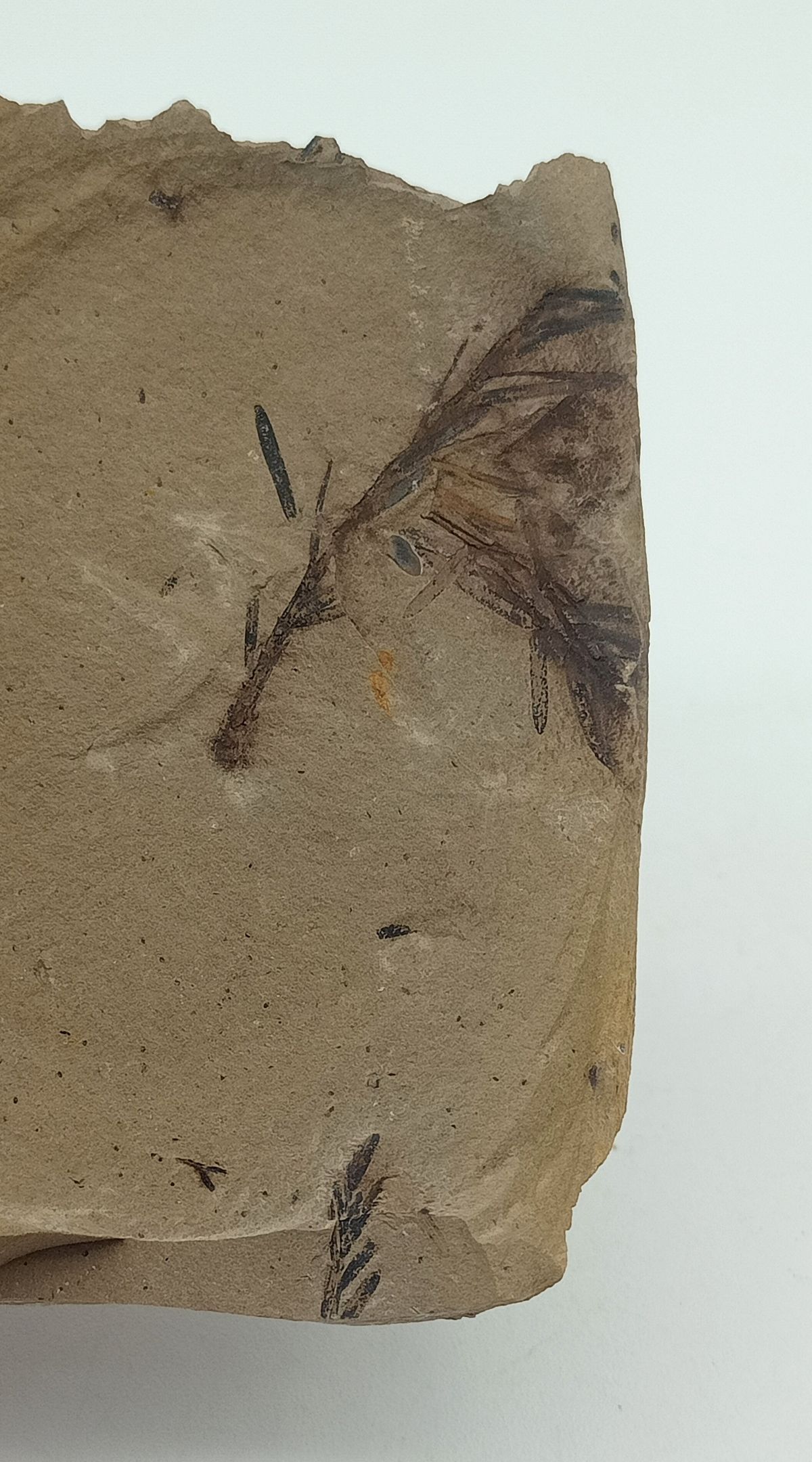 Matriz compacta conteniendo impresiones dispersas de ramas de buena preservación.