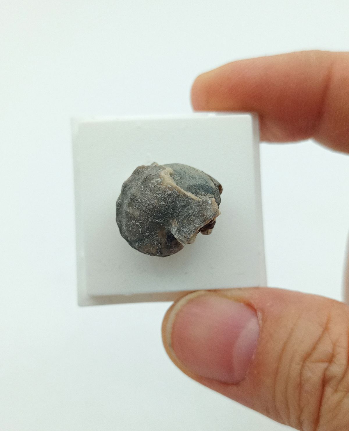 Especimen de Pharkidonotus percarinatus cuyas medidas son: 17x15 milímetros. Se presenta en urna de 30x30 mm. 300 millones de años. Carbonífero. Formación: Finis Shale. Procedencia: Jack County, Texas (USA).