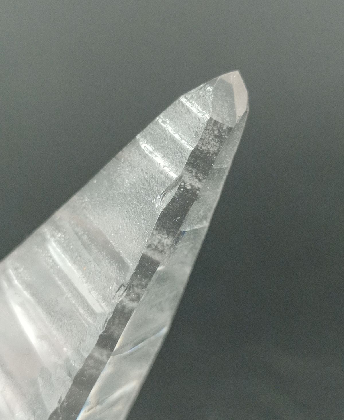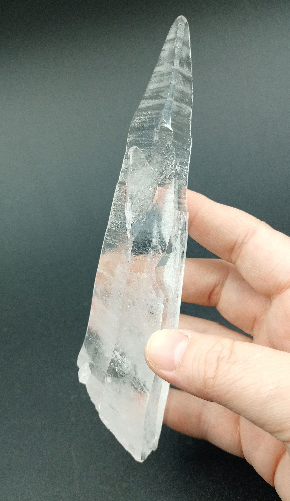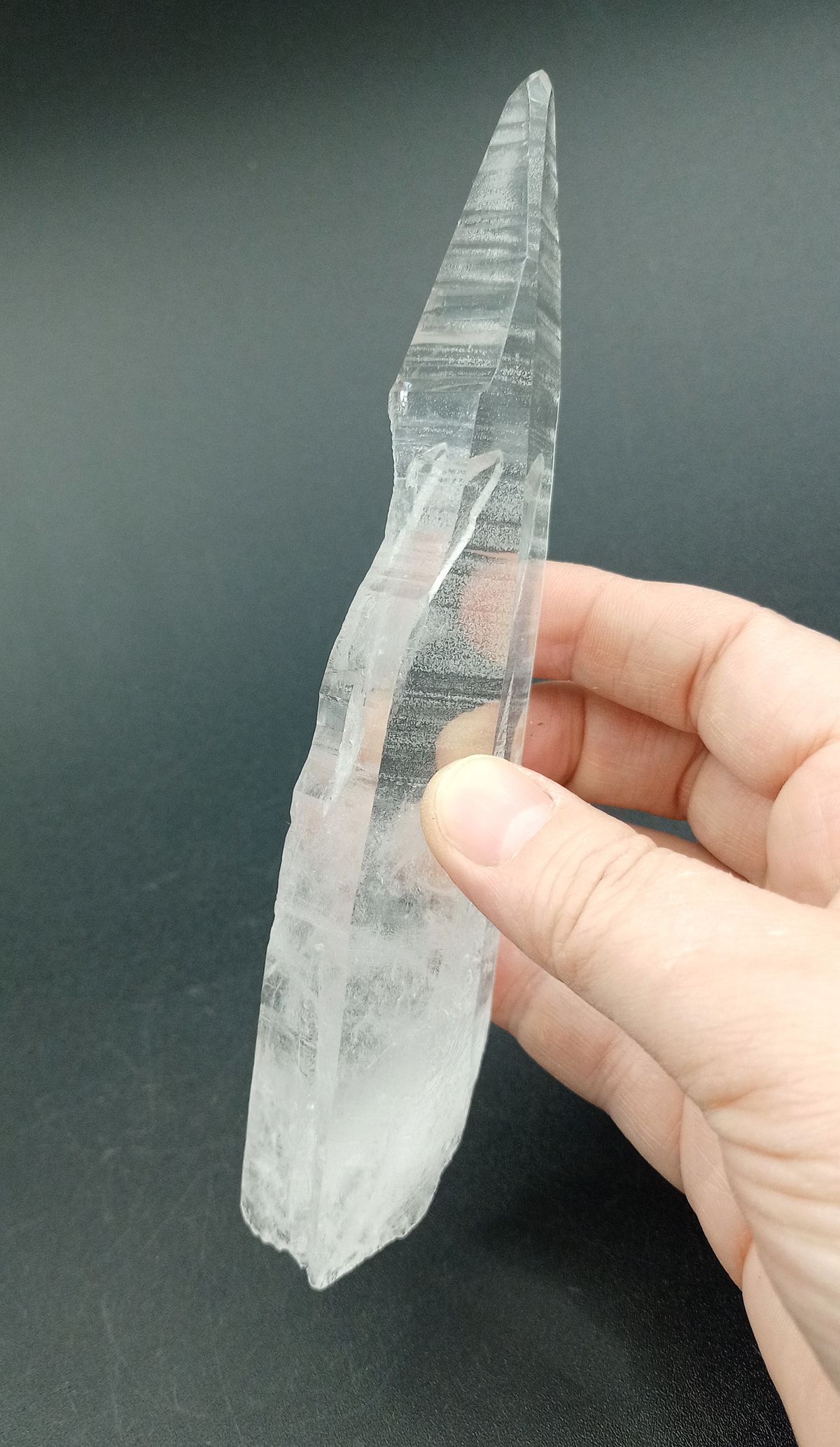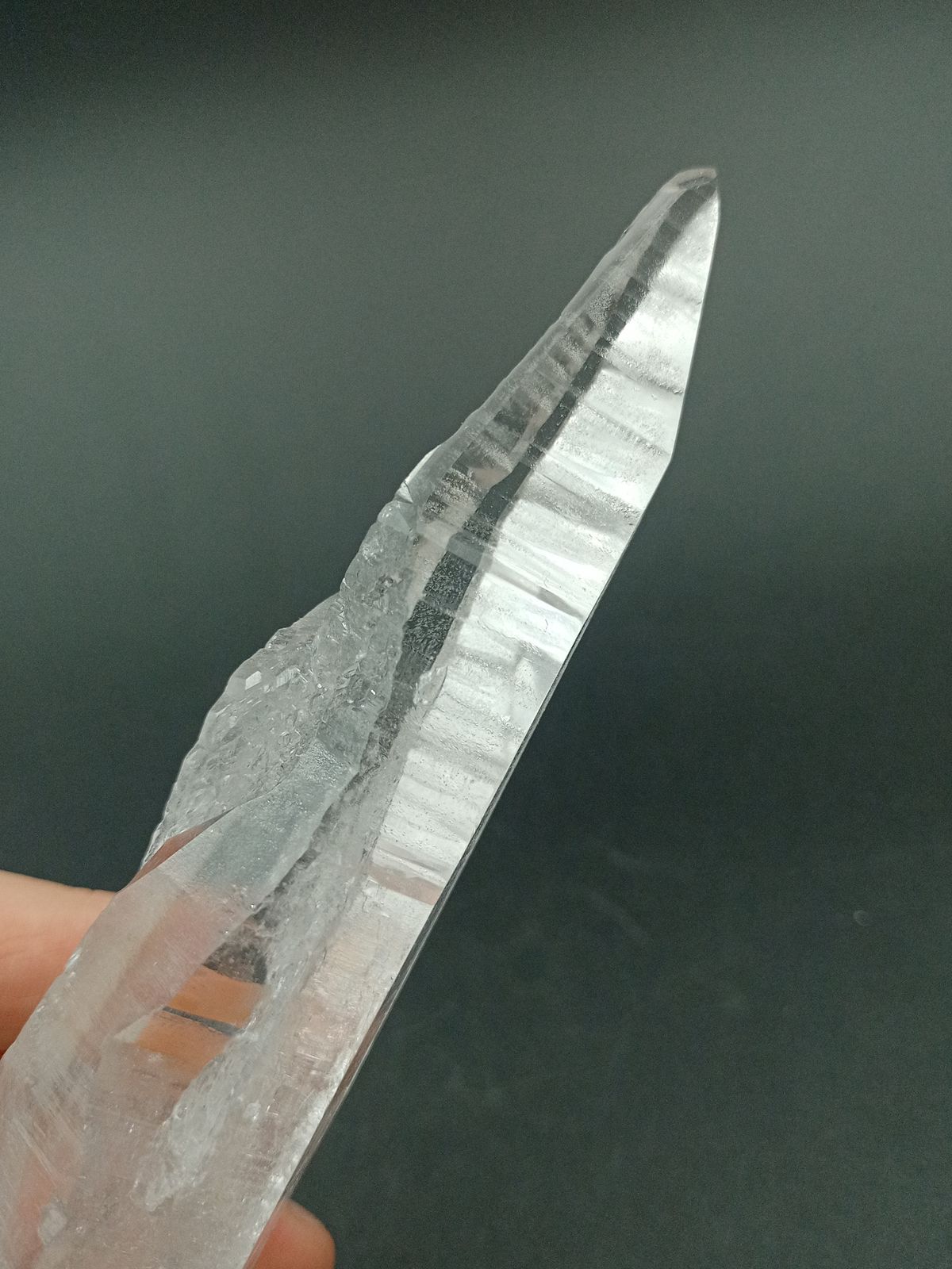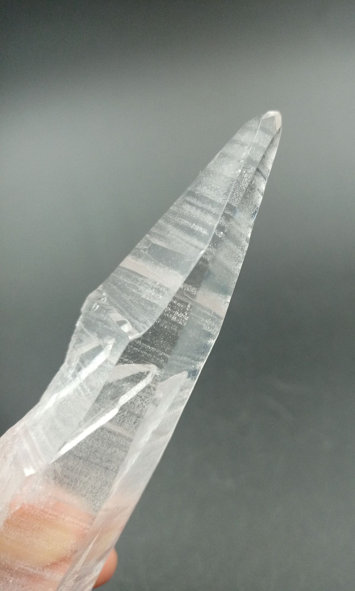 Punta de Cuarzo Lemuriano. Tamaño de las pieza 160 mm de largo x 33 mm en el extremo más grande Procedencia: Diamantina, Minas Gerais, Brasil.