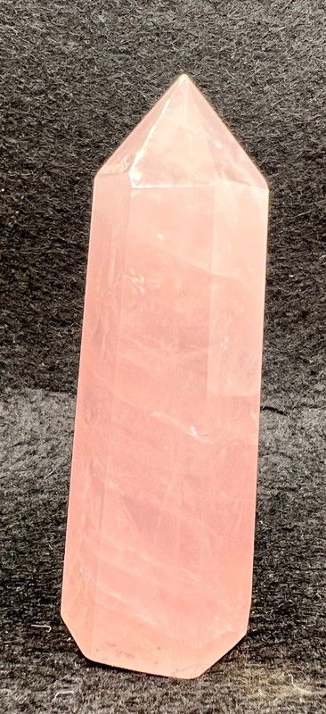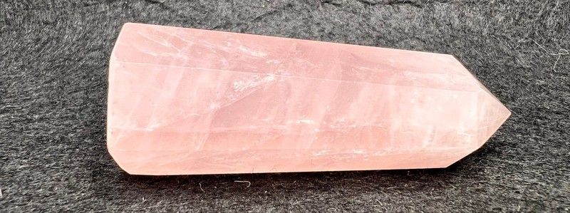 Este ejemplar de Punta de Cuarzo Rosa pulido mide de largo 64 mm.. y de ancho 22 mm... Procedencia: Brasil