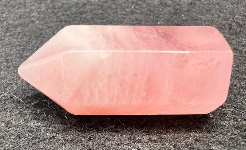 Este ejemplar de Punta de Cuarzo Rosa mide de largo 14 mm.. y de ancho 6 mm... Procedencia: Brasil