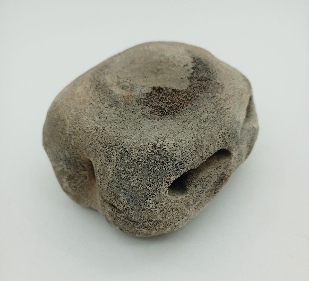 Vértebra de Cetáceo cuyas medidas son: 96x86x57 mm. Mioceno - Yorktown fm. 4 millones de años. Procedencia: Aurora, Carolina del Norte (U.S.A.)